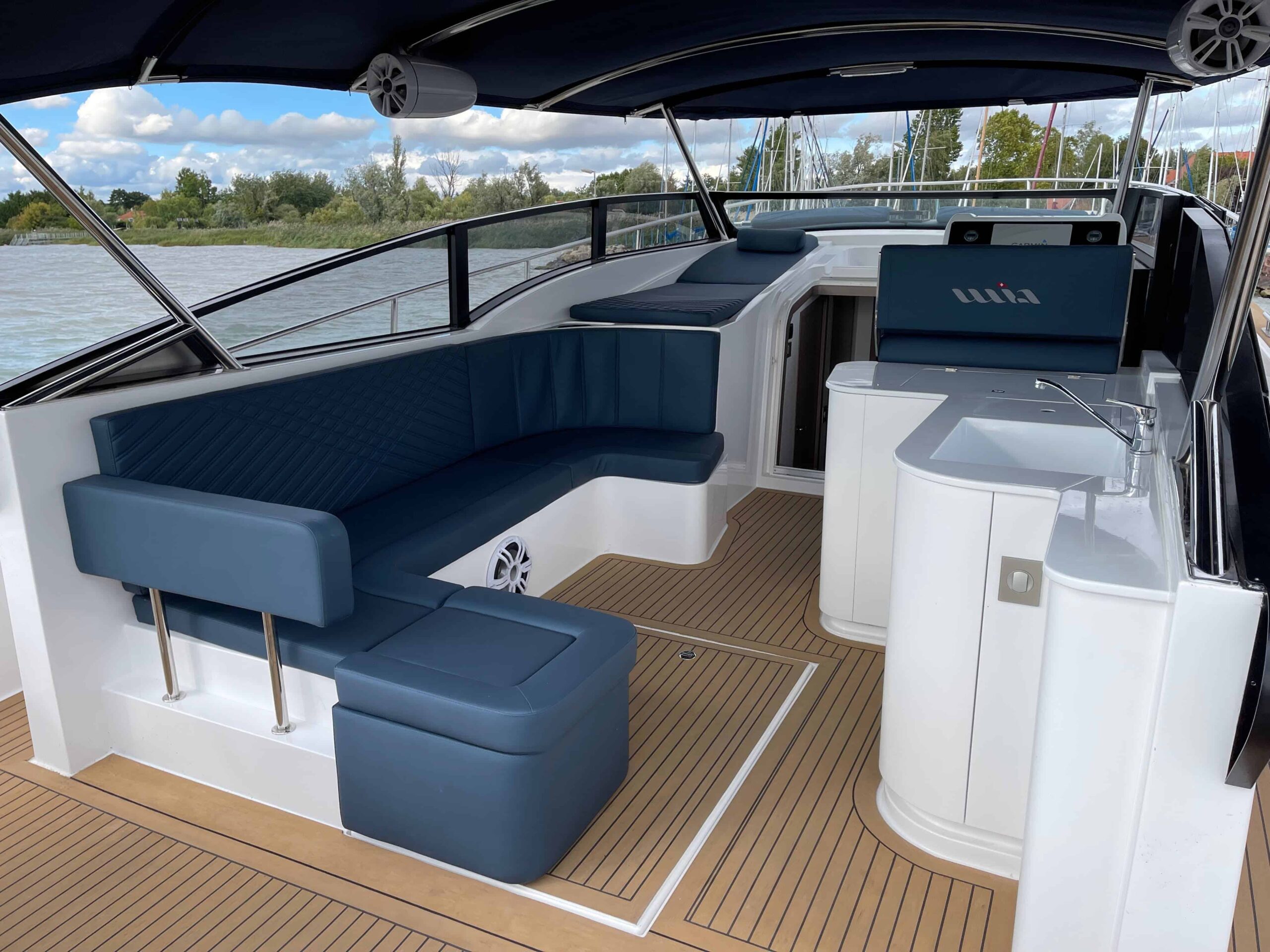 A BiGpepper egy WIA 435 cabrio típusú elektromos motoros luxus jacht a Balatonon, prémium felszereltséggel és minőséggel.